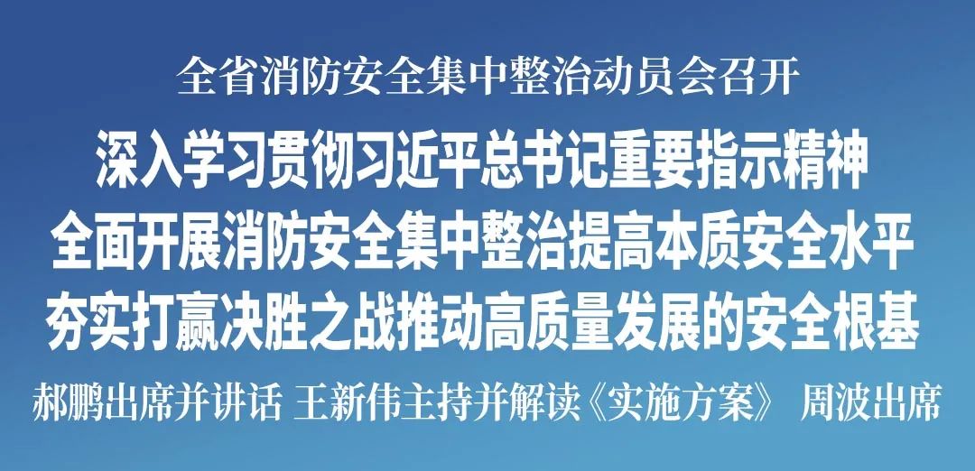 王新伟指出,要深入贯彻落实习近平总书记重要指示精神,按照省委要求,深刻反思、深刻警醒、深入检视,明确责任、到底到边、见事见人,全力抓好消防安全各项工作,坚决守住安全底线,切实保障人民群众生命财产安全。要坚持问题导向,加强源头预防管控,深入细致排查隐患,抓紧补齐短板弱项,以铁腕治患精神和坚决有力举措,把《实施方案》的各项要求落实落细,把任务和责任落实到各个单位、最小单元,落实到具体岗位、具体人员,全面筑牢全省消防安全铜墙铁壁。要压实消防安全主体责任、属地责任、行业管理责任以及监管责任,拧紧责任链条,宁可交叉并行、不可让步留白,以“时时放心不下”的责任感,坚决打赢全省消防安全集中整治这场硬仗。要更好统筹发展和安全,强化系统观念、底线思维,统筹抓好城镇燃气、矿山、危化品、道路交通、渔业船舶、建筑业等重点领域安全,做好食品药品安全、社会治安、信访稳定、民生保障等工作,不断提升本质安全水平,以高水平安全护航三年行动决战决胜。要持续巩固三次产业协调发展、三大需求持续向好、经营主体活力不断增强的良好态势,加快推进重点项目建设,铆足干劲奋力实现“双过半”。